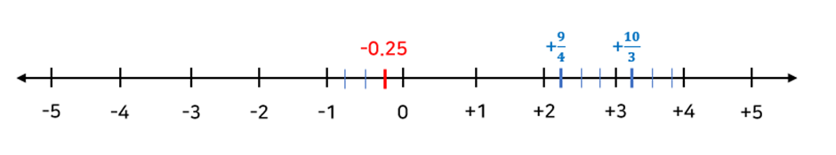정수와 마찬가지로 모든 유리수도 수직선에서 나타낼 수 있어요.