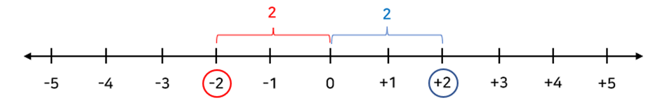 위 수직선에서 +2와 원점 사이의 거리는 얼마일까요? 2칸만큼 떨어져 있습니다.