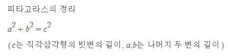 혹시 피타고라스의 정의에 대해 들어본 적 있으세요? “직각 삼각형에서 빗변의 길이의 제곱은 나머지 두 변의 길이의 제곱의 합과 같다” 라는 정의인데요,