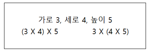 가로와 세로의 길이를 먼저 곱하고, 높이를 곱하나 세로와 높이를 먼저 곱하고 가로를 곱해도 이 상자의 길이는 일정합니다.