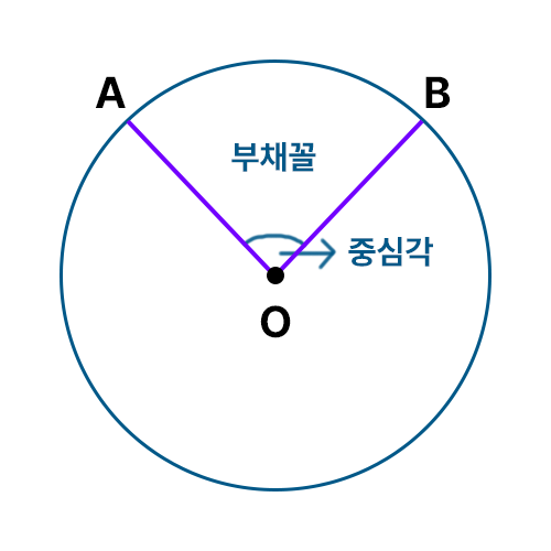 여기서 "r"은 부채꼴의 반지름, "중심각"은 부채꼴의 중심각 크기를 나타냅니다.