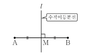 선분의 양 끝 두 점에서 같은 거리에 있는 점은 그 선분의 수직이등분선 위에 있습니다.