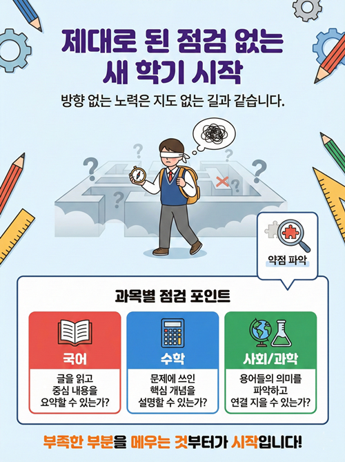 하지만 ‘급할수록 돌아가라'는 말처럼, 의욕이 앞서다 보면 정작 중요한 방향을 놓치기 쉽습니다. 오늘은 새 학기를 앞두고 학부모님들이 의도치 않게 가장 많이 하는 실수 세 가지를 함께 점검해 보겠습니다.